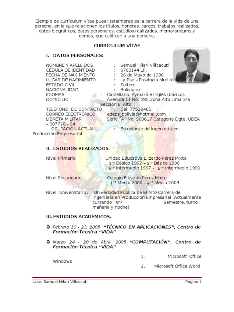 Modelo De Curriculum Vitae Bolivia – Modelo De Curriculum Vitae