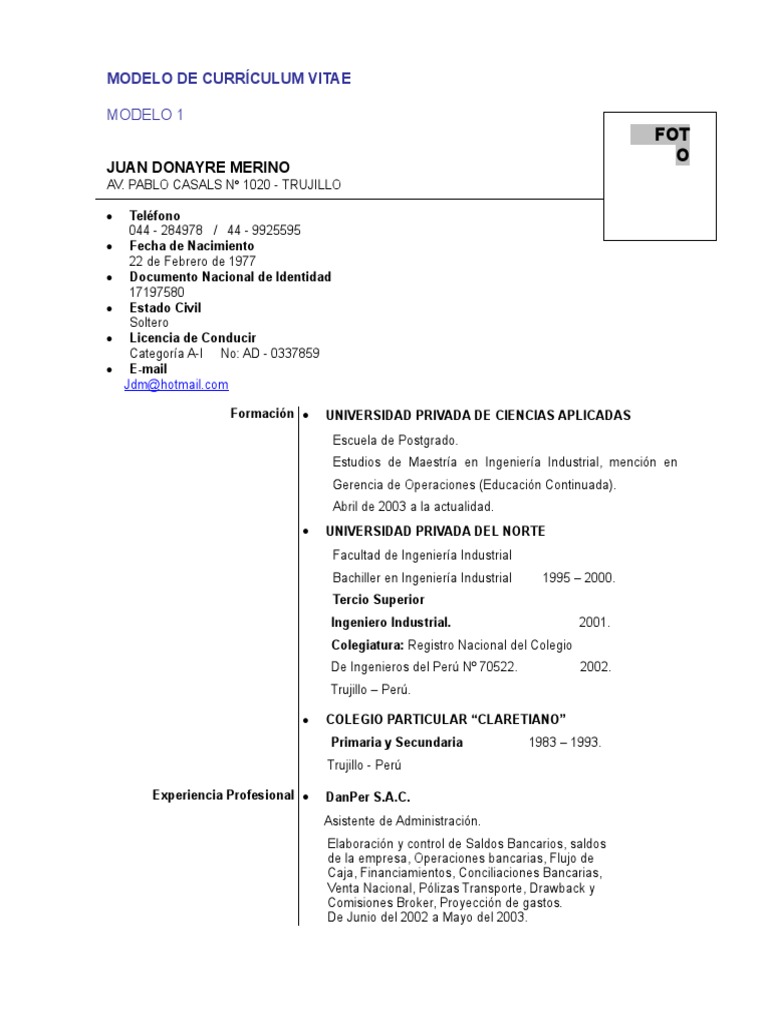 Modelo De Curriculum Vitae Universidad De Lima – Modelo De ...