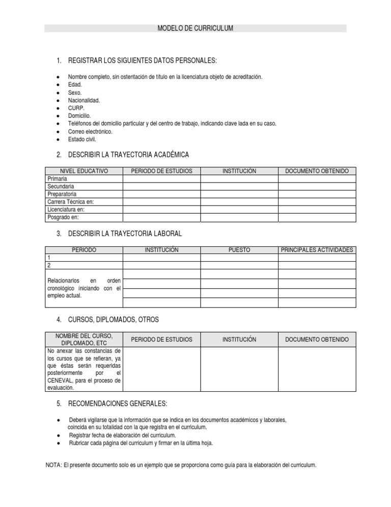 Modelo De Curriculum Vitae Mexico – Modelo De Curriculum Vitae